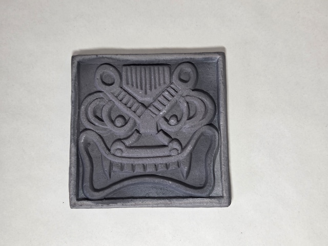 瓦コースター(鬼面) 瓦の表情を、そのまま一枚に。 鬼瓦の意匠を正方形に落とし込んだ、瓦素材のコースターです。 実際の屋根瓦と同じ素材を使用し、凹凸のある表情や輪郭の線まで、くっきりと浮かび上がります。 釉薬を使わない瓦ならではのマットな質感は、 カップやグラスを置いたときにも手元になじみ、静かな存在感を添えてくれます。 コースターとして使うのはもちろん、 小さな飾り台や、デスク周りのアクセントとしてもおすすめです。 日常の中に、少しだけ和の意匠と素材の重みを。 使うたびに、瓦の持つ表情を楽しめる一枚です。 商品仕様 素材:瓦(実際の屋根瓦と同素材) 形状:正方形 一辺約9.5cm 用途:コースター/小物置き/インテリア ※当製品は焼き物です。一つ一つ風合いが異なります写真と異なる部分がある場合がございます。あらかじめご了承ください。 ※価格は予告なく変更される場合がございます。あらかじめご了承ください。 Edo Kawara Coaster — Demon Face / 瓦コースター 鬼面 The expression of kawara, held in the palm of your hand. The kimen — the fierce, expressive face found on the ridges and eaves of Japanese temples and traditional architecture — has been reimagined here as a square coaster. Crafted from the same clay and kiln process as real roof tiles, the bold lines of the brow, the forceful set of the mouth, and the surrounding detail all rise in sharp relief from the unglazed surface. The matte texture of kawara is not just visual. Place a cup on it and you will notice: the slight roughness naturally prevents condensation from spreading, keeping your table dry without a word. A coaster that works quietly. A piece of Japanese craft that speaks clearly. Specifications Material: Kawara (same as authentic roof tile) Shape: Square / approx. 9.5cm per side Use: Coaster / small tray / interior accent Each piece is unique. The natural variations in tone and surface texture are the result of kiln firing — an inherent quality of authentic kawara.