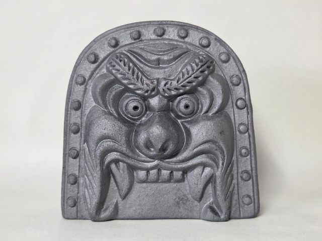 鬼瓦文鎮(ペーパーウェイト) 机の上で、しっかりとした存在感。 鬼瓦をモチーフにした文鎮です。 本物の屋根瓦と同じ素材を使い、鬼瓦の表情をそのまま小ぶりなサイズに落とし込みました。 眉の立体感、口元の力強さ、縁を囲む数珠掛けのディテールまで、瓦らしい陰影がしっかりと表れています。 重さは約600g、高さは約10cm。 紙をしっかり押さえる実用性はもちろん、机の上に置くだけで空気が少し引き締まるような感覚があります。 無機質になりがちなデスクに、 和のモチーフと素材の重みを、さりげなく。 「飾るため」でも「使うため」でも、どちらでも成立する。 鬼瓦ならではの迫力を、日常の中で楽しめる一品です。 商品仕様 素材:瓦(実際の屋根瓦と同素材) 重量:約600g 高さ:約10cm 用途:文鎮・ペーパーウェイト・インテリア小物 ※当製品は焼き物です。一つ一つ風合いが異なります写真と異なる部分がある場合がございます。あらかじめご了承ください。 ※価格は予告なく変更される場合がございます。あらかじめご了承ください。 Edo Kawara Paperweight — Demon Tile / 鬼瓦文鎮 Something shifts when this sits on a desk. The onigawara — the guardian demon face of traditional Japanese roof tiles — has been scaled down from rooftop to tabletop, without losing a trace of its presence. Crafted in Ogawa-machi, Saitama, from the exact same clay and kiln process used for real roof tiles, this paperweight carries the weight, texture, and expression of the original. The raised brow. The set of the jaw. The rosary-bead border that frames the face. Every detail that would be carved into a full-scale onigawara is here, rendered in unglazed kawara with the quiet authority of the real thing. At approximately 600g, it holds paper with ease — but its purpose goes beyond function. On an otherwise unremarkable desk, it is the one thing that makes you pause. Specifications Material: Kawara (same as authentic roof tile) Weight: approx. 600g Height: approx. 10cm Use: Paperweight / decorative object As with all fired ceramics, each piece is unique. Minor variations in surface tone and texture are a natural quality of hand-crafted kawara.