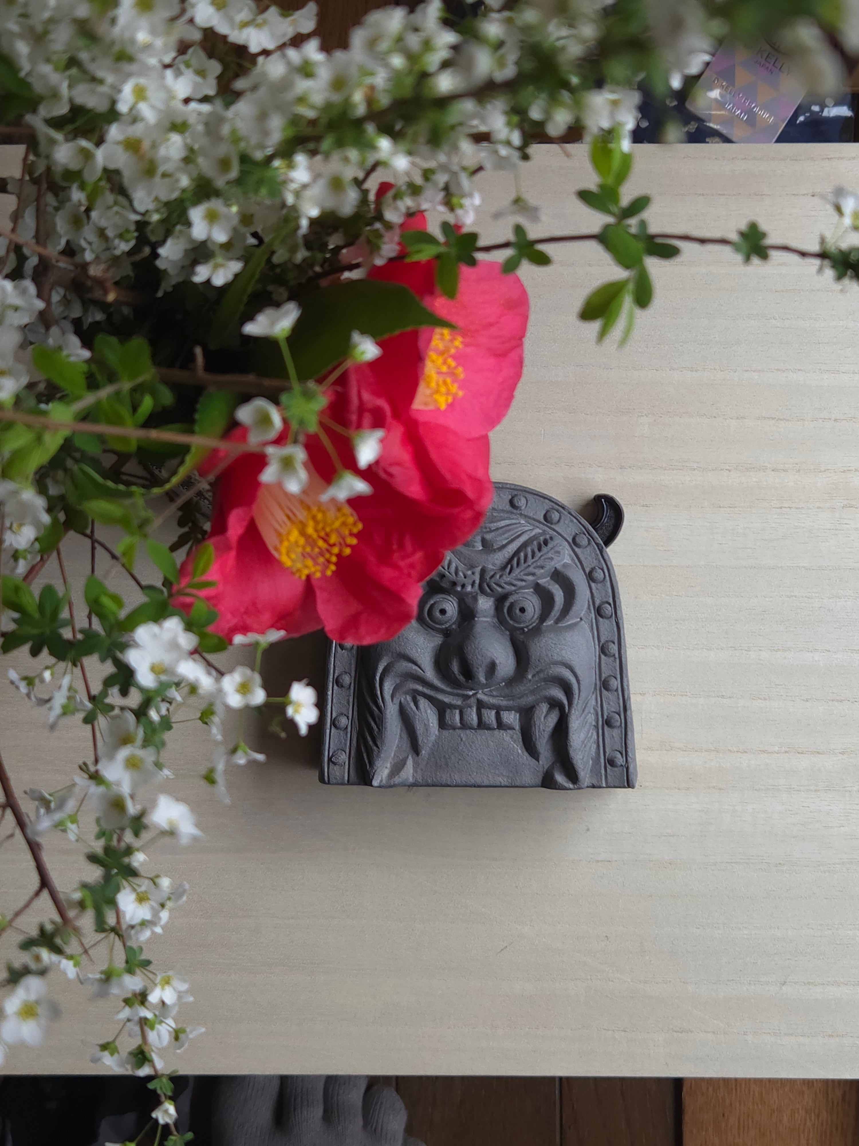 本物の屋根瓦と同じ素材を使い、鬼瓦の表情をそのまま小ぶりなサイズに落とし込みました。