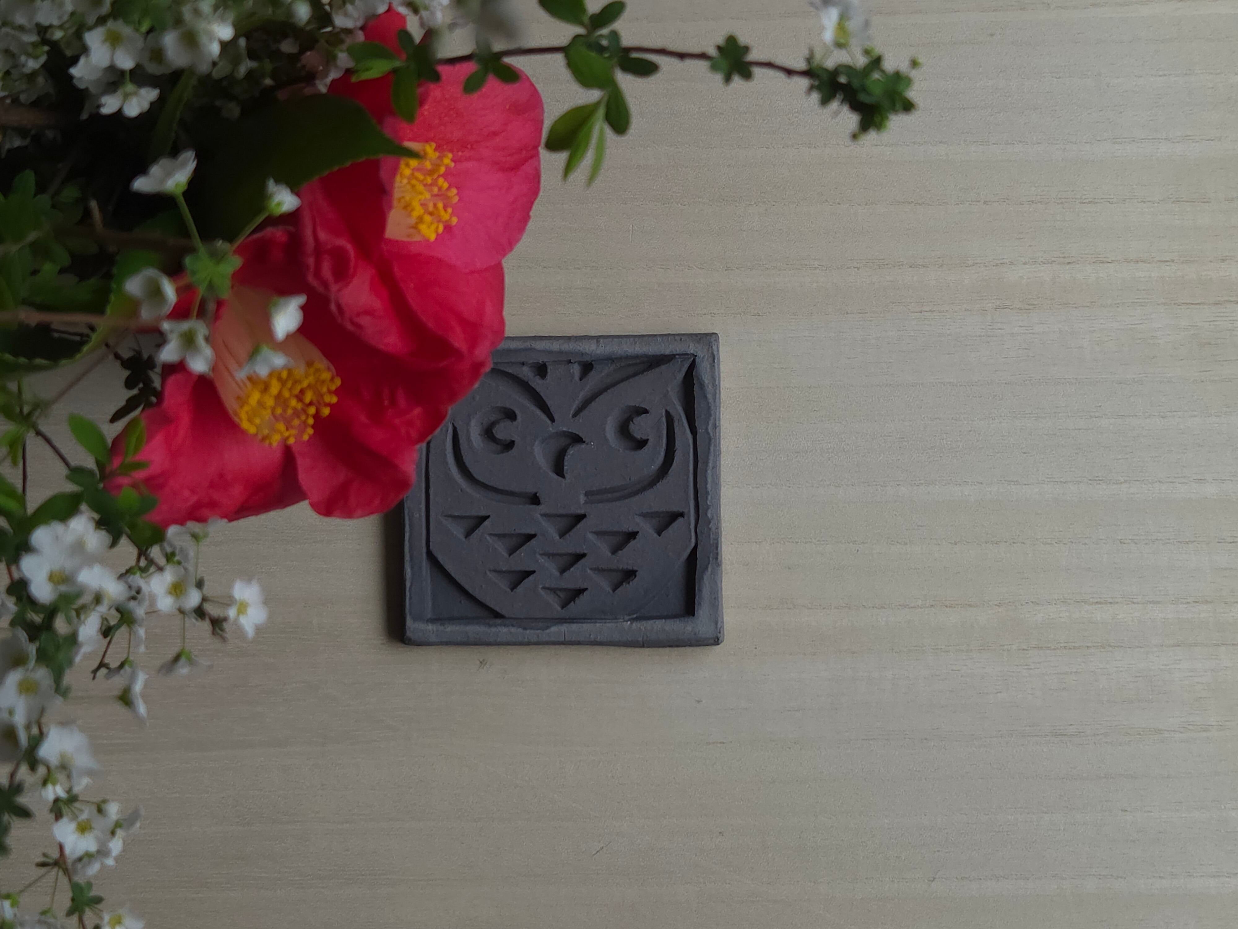 瓦の素材に、ふくろうの意匠いれたコースターです。